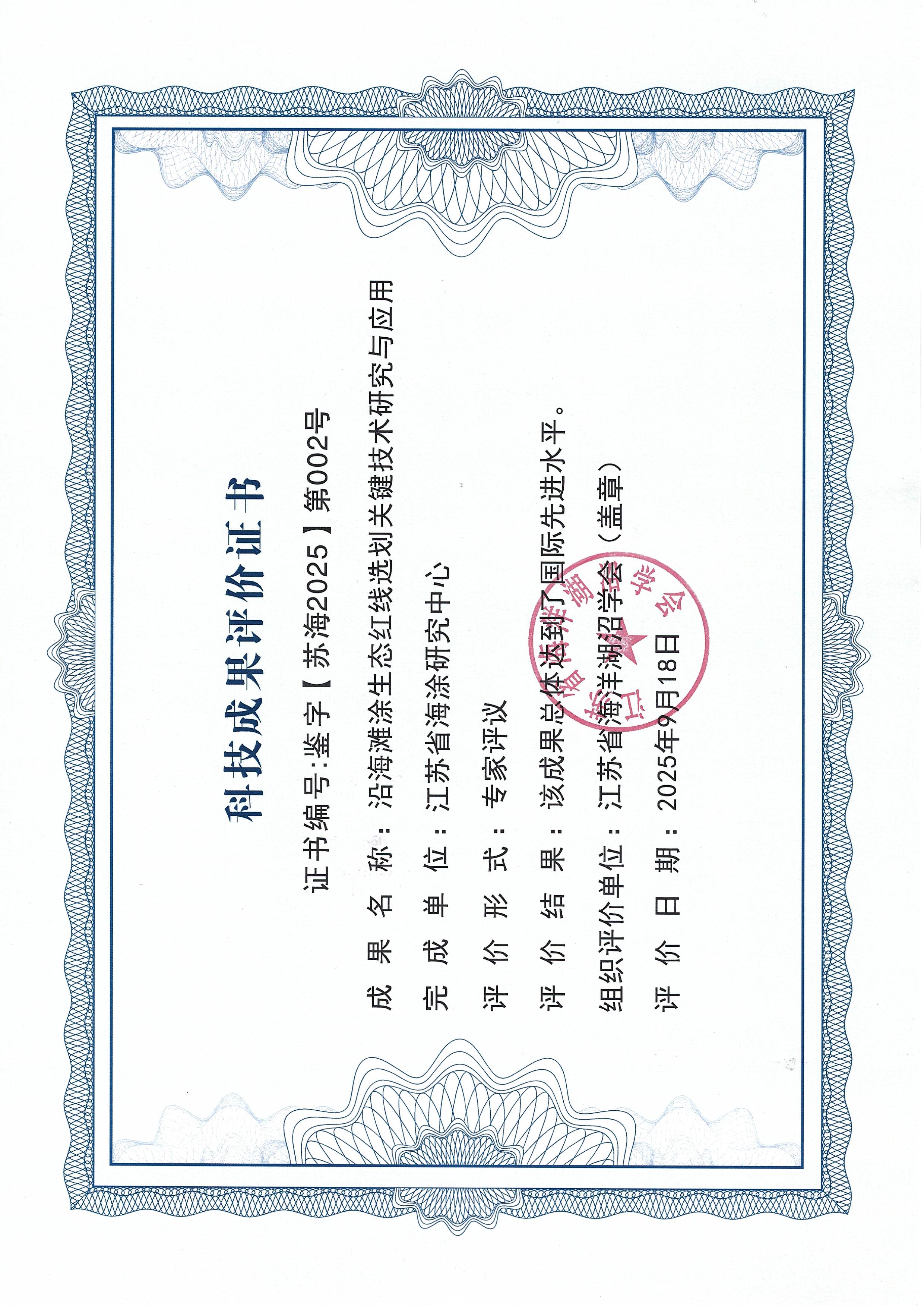 2025年9月18日,省海涂研究中心牵头承担的“沿海滩涂生态红线选划关键技术研究与应用”研究成果委托省海洋湖沼学会组织专家进行了科技成果评价。来自南京水利科学研究院、南京大学、河海大学、江苏省渔业技术推广中心、南京师范大学的五位专家组成了成果评价专家组,会议由省海洋湖沼学会常务副秘书长龚伊主持。